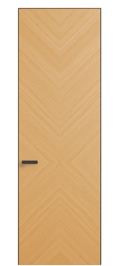 Полотно Рифт в скрытом алюминиевом коробе становится полноценным элементом декора. В коллекции представлено 9 моделей дверей в высоте до 3 метров. Рисунок раскладки шпона варьируется от простого до сложного. «Рубашка» для каждого полотна подбирается вручную по цвету, текстуре и фактуре.